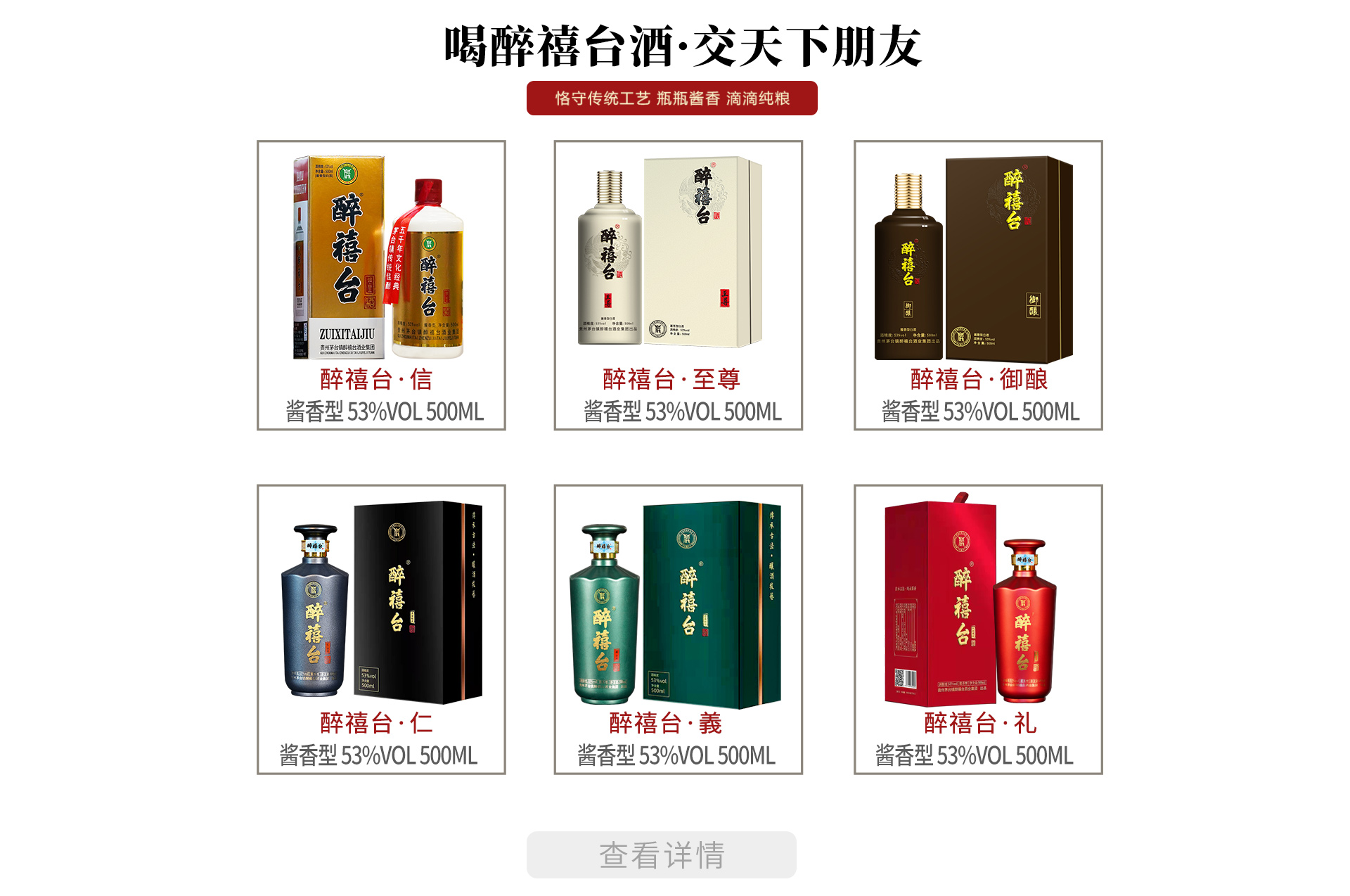 貴州醉禧臺(tái)酒業(yè)(集團(tuán))公司位于"中國(guó)酒都核心區(qū)"的國(guó)酒之鄉(xiāng)茅臺(tái)鎮(zhèn),醉禧美酒醬酒香,玉碗盛來琥珀光,因飲后醇厚余香、回味悠久,具有茅臺(tái)古鎮(zhèn)醬香之風(fēng)味,故名醉禧臺(tái)。醉禧臺(tái)燒坊始建于1981年,于2012年商標(biāo)注冊(cè)為醉禧臺(tái)酒廠,2016年3月16日正式成立,“貴州醉禧臺(tái)酒業(yè)(集團(tuán))公司”。因得天獨(dú)厚的朱砂土壤和氣候,產(chǎn)品選用赤水河兩岸的優(yōu)質(zhì)紅高粱、小麥為主要原料,秉承茅臺(tái)傳統(tǒng)釀酒工藝釀制,現(xiàn)有廠房占地面積約3萬(wàn)平方米,年產(chǎn)量達(dá)3000余噸,是一家極具品質(zhì)為基,時(shí)間為核、貯足陳釀、醬香型白酒的生產(chǎn)、研發(fā)、銷售為一體的釀酒企業(yè)。
